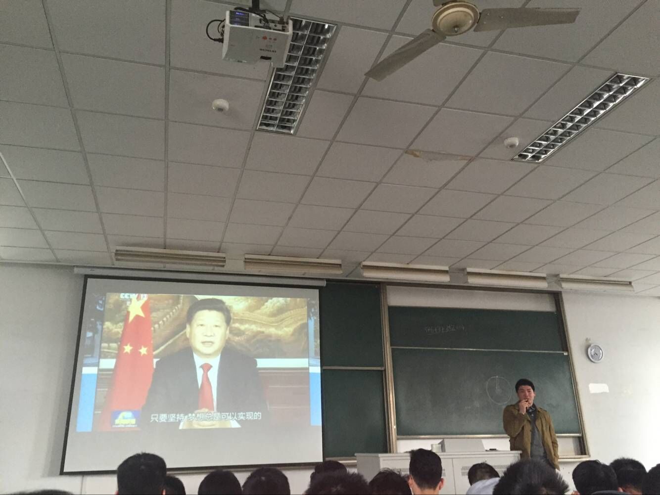 随后是我们辅导员周青老师的讲话,他在承接唐路同学的总结之后,针对我们上学期的表现作了一系列的提醒与督促,还为我们介绍了这一学期的主要安排,包括创训,转专业,“1442”项目等事宜,解答了同学们的疑惑,最后以习近平总书记的话激励同学:只要坚持,梦想总是可以实现的