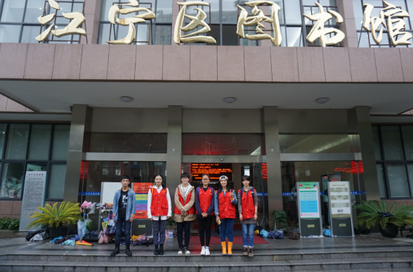雨淅淅沥沥地下着,但正所谓心晴,雨亦晴,公司七位同学仍热情不减,早早等在公交站前准备前往江宁图书馆开展本次志愿服务活动。
