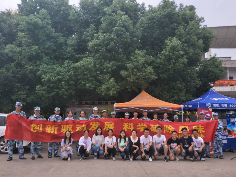 由于时间关系,持续了一小时的激烈竞争后,活动迈向尾声。前来参加活动的同学们和工作人员在翳翳绿荫下合影:具有深刻纪念意义的时刻在此定格,也标志着“创新驱动发展,科学破除愚昧”的行动开启了新的征程!