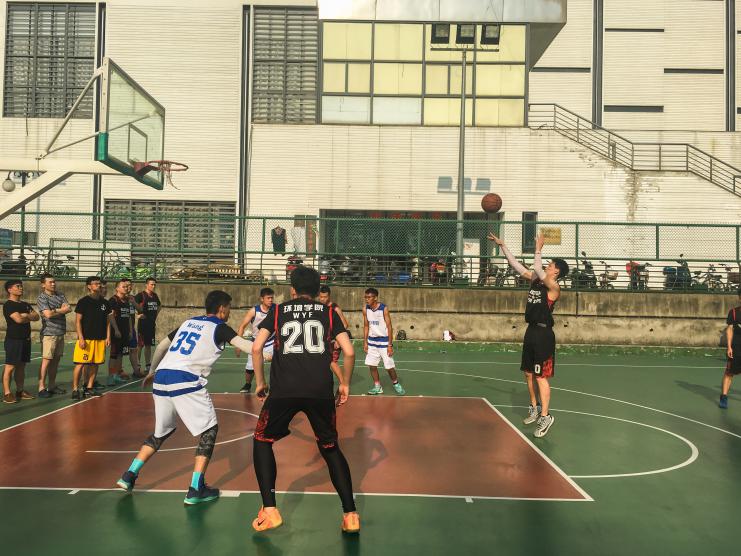 5月16日下午,威廉希尔williamhill研究生篮球赛循环赛环境院与水电院的比赛拉开序幕。比赛一开始双方打得异常胶着:水电院率先取得领先,环境院在几次快攻失手后逐渐转为打阵地战,慢慢将比分反超。到半场结束,环境院领先4分。