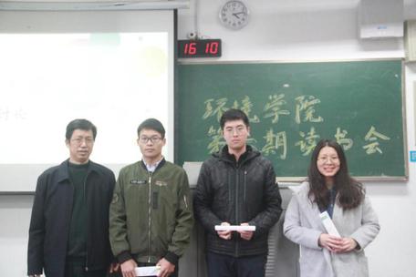 本次读书会经过读书笔记和绘画作品的评比,共评选9位获奖同学。他们分别是一等奖获得者华夏;二等奖获得者杨万航、肖弦、杭之昊;三等奖获得者舒茜娜、岳楠、戴志欣 、周青青、何德敏.获奖同学分别由环境院16级辅导员金意倩老师和马克思主义学院黄明理教授颁发奖品。