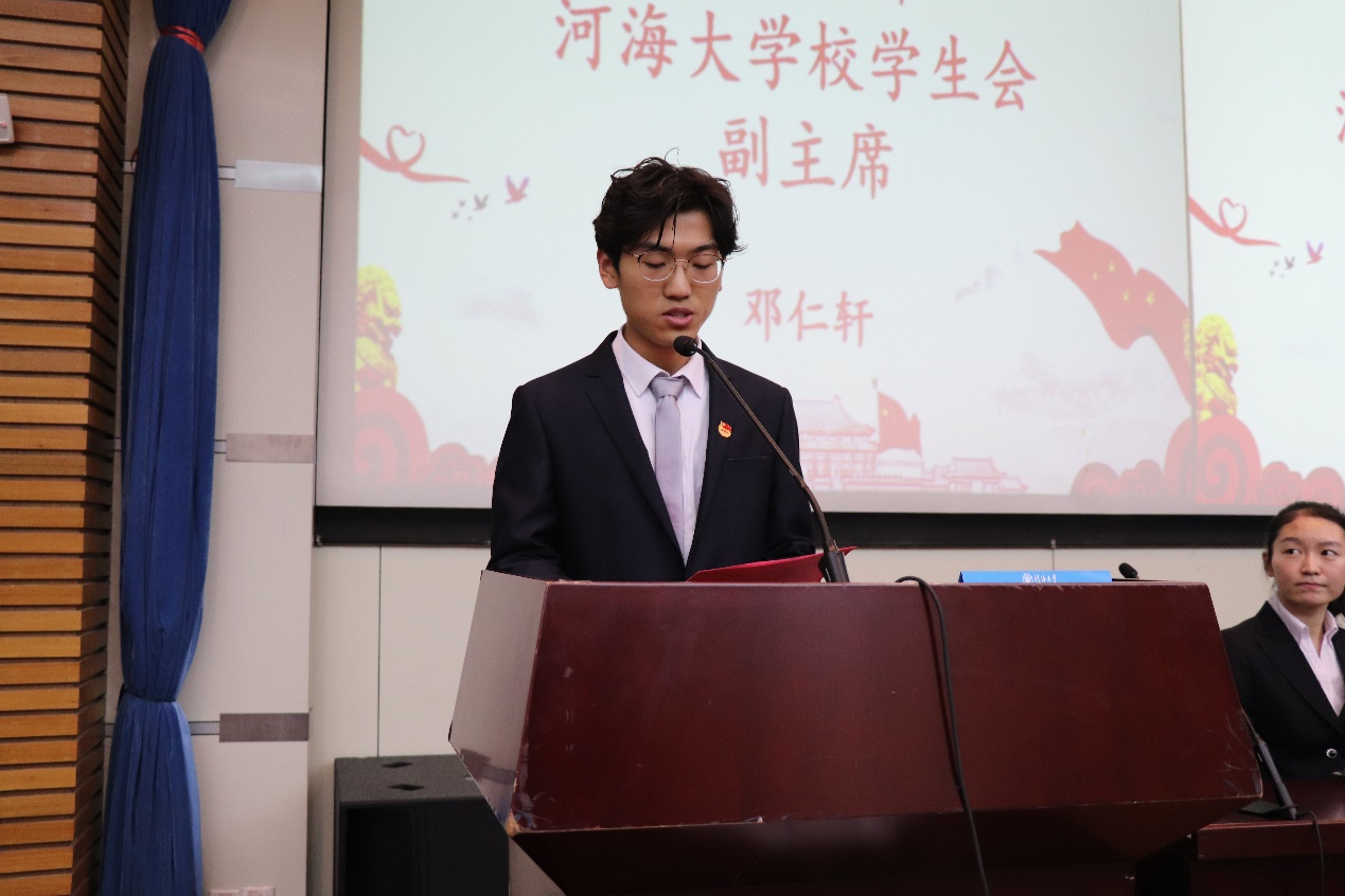 在接下来的员工代表致辞环节,校员工会常任代表邓仁轩同学和校员工科协副主席岳楠同学为开幕式致辞,他们回顾了威廉希尔官网过去一年中在举办讲座、参加校运会以及其他工作中的优秀表现和取得的优异成绩,并引用习近平主席对青年一代的期盼,提出对第九届员工会和科协主席团的希望。