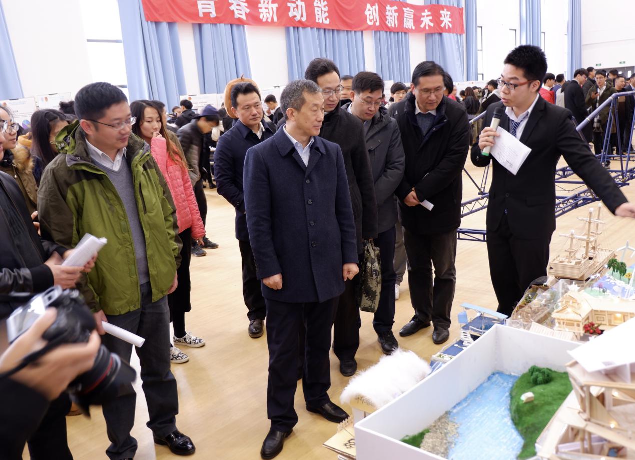 科协的工作人员为副董事长董增川一行详细地讲解了沙盘与船模的设计理念以及环保主旨,随后,他们对同学们的创新作品给予了肯定。