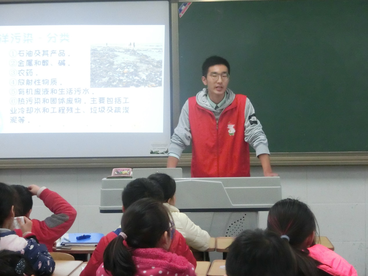 本次活动分为三个部分,第一部分是再学新知。近几十年,随着世界工业的发展,海洋的污染也日趋严重,使局部海域环境发生了很大变化,并有继续扩展的趋势。为了给小朋友们普及关于海洋污染的相关知识,志愿者们准备了ppt,从海洋污染的定义、分类等方面进行讲解。在上课过程中,志愿者们与小朋友们进行了提问和观点阐述等一系列的互动交流,课堂气氛十分活跃。在这一环节里小朋友们都掌握了不少关于海洋污染的知识。