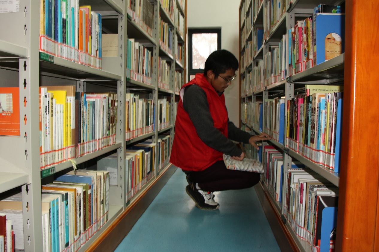 在近三个小时的反复寻觅查找中,志愿者们动作越发娴熟,对于寻找书籍编码所在书架也越发轻车熟路。在书架间穿梭的矫健志愿者身影是图书馆阅读区内一道美丽的风景线。