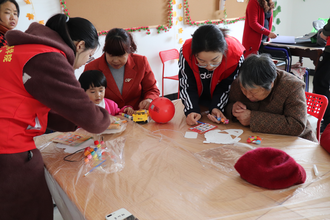 活动临近结束,志愿者主动将活动场地打扫干净,将部分没有制作的材料赠送给老人,并和老人们合影留念。