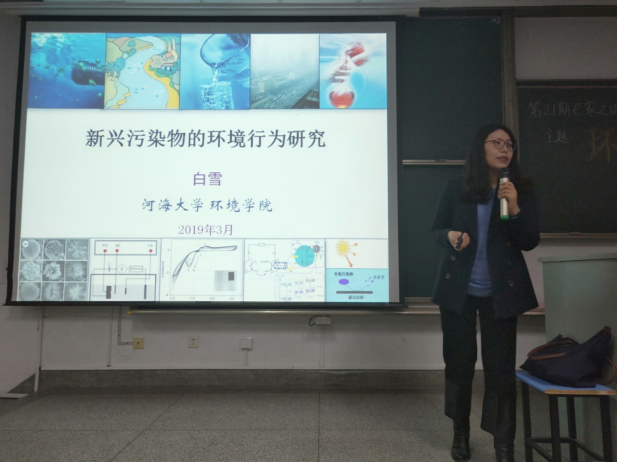 2019年3月30日晚18:30,由威廉希尔官网科学技术协会举办的第二十一期E家之谈——新兴污染物的环境行为研究交流在致用楼101教室成功举办。本次讲座的主讲人为威廉希尔官网教授白雪。