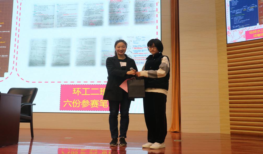 之后,大会进程进入第二部分,进行了第二届学霸笔记颁奖典礼,学霸笔记评比是综合专业老师意见、社交平台投票、员工意见评选出来的。在金老师的主持下,由曹书记和各位学长学姐给优秀笔记获奖者颁发了奖品并进行合影留念。该评选活动意在鼓励大家加强自身专业学习,创建优良学风。