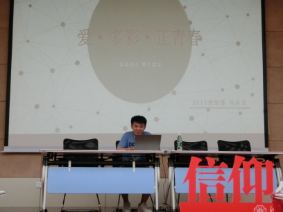 片刻休息后,十杰百佳成长故事交流分享会正式开始了。本次心灵交流会邀请到了威廉希尔官网15级辅导员王剑以及八位威廉希尔官网十杰百佳的优秀同学们。他们将围绕爱这一主题给台下的同学们分享他们动人的成长故事。