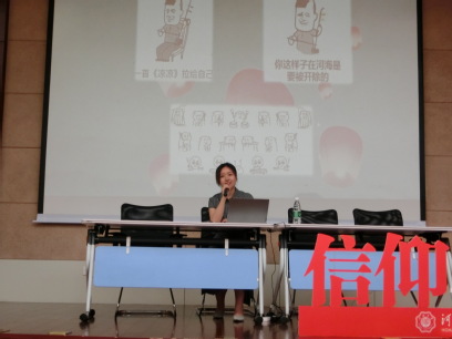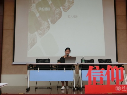 最后是2018年获得“海韵风华”称号的李鼎新同学。她向员工们讲述了她大学经历的温暖故事,也特别提到了舍友之间应坦诚相待,营造良好的宿舍关系。