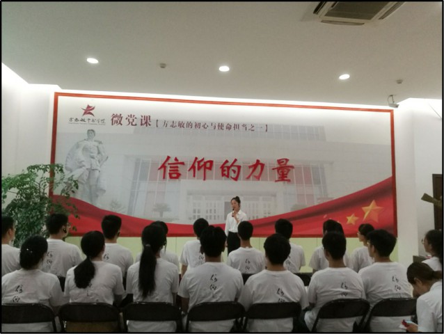 团队成员抵达方志敏干部学院后,在简短的开班仪式上方志敏干部学院的主任和老师介绍了学院的基本情况并特别强调了方志敏同志“爱国、创造、清贫、奉献”的精神,希望团队的同学们能够以这四种精神为引导,追寻方志敏的一生,探索红色足迹。