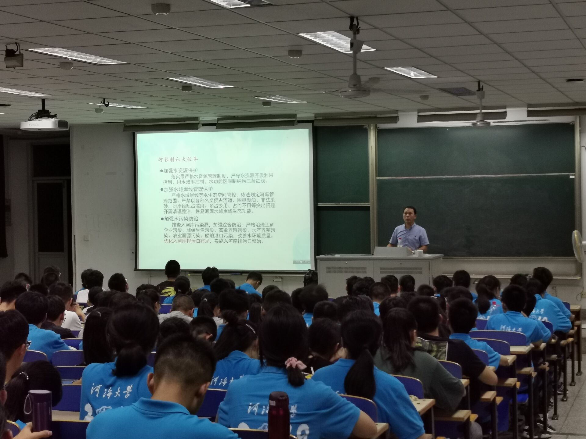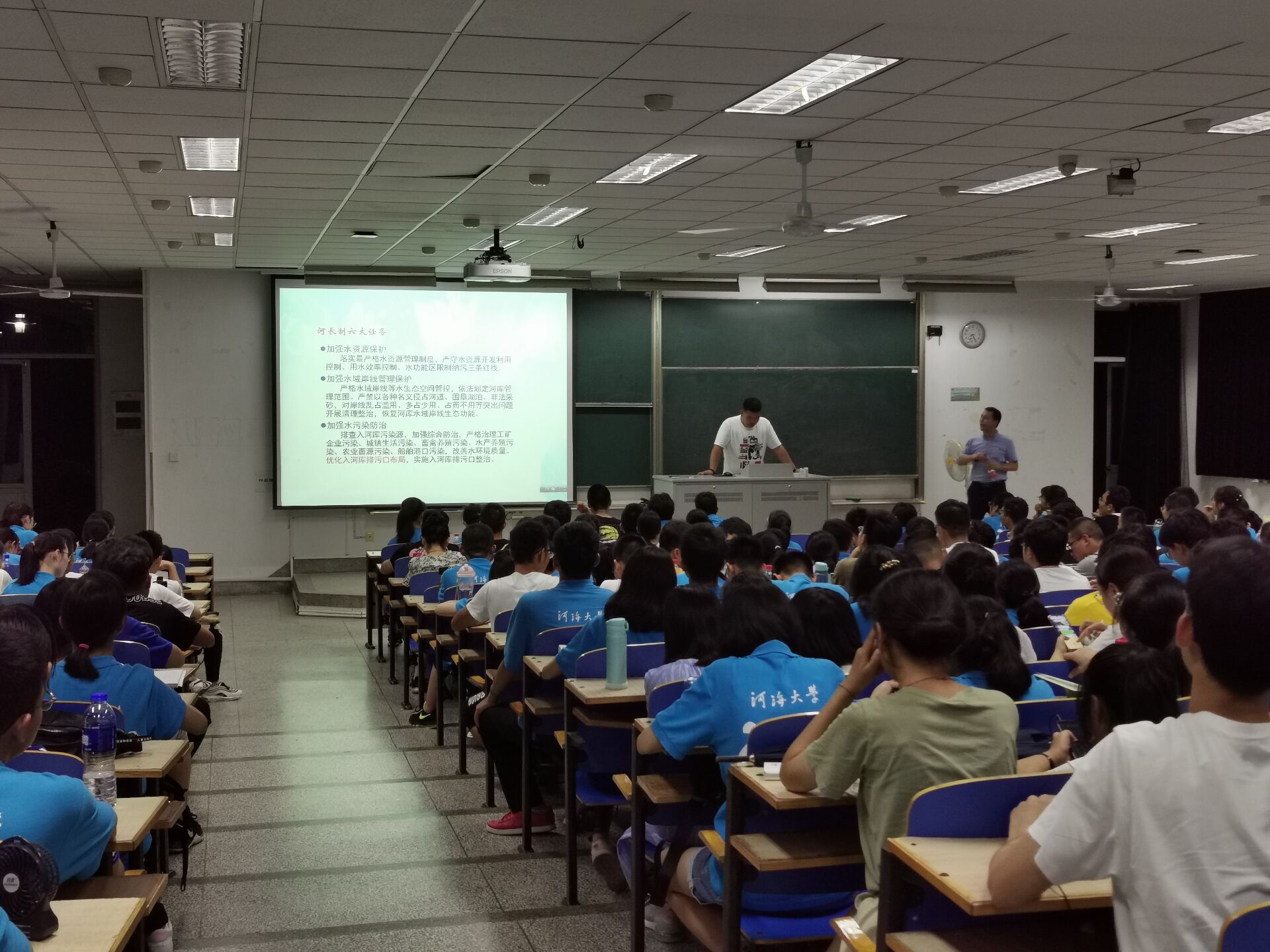 大会一开始,李老师就以喊口号的方式激发同学们的热情。随后李老师在简单的自我介绍后,开始了本次讲座。讲座期间,李老师多次与同学们互动交流,询问同学们对自己专业的认识,现场氛围十分热烈。李老师用各种数据告诉同学们威廉希尔williamhill的优胜之处,还以近期的大型项目河长制为例子,说明在座同学的专业的优越性,增强同学们的自豪感。