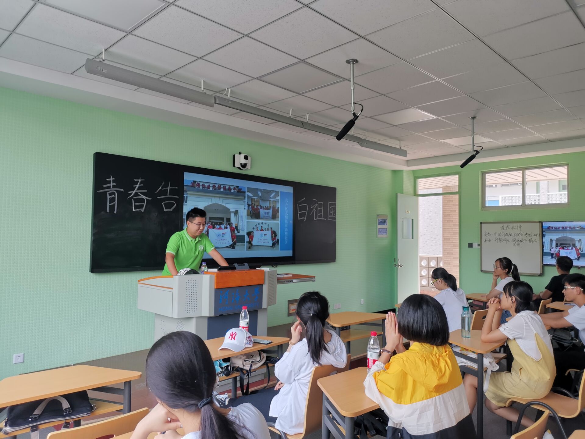 之后由助学导师周郁学长和杨紫瑄学姐以图文并茂的形式为我们介绍了他们的社会实践经历以及在河海生活的一年中的感悟。在助学导师生动有趣的演讲下,同学们渐渐放松了自己。