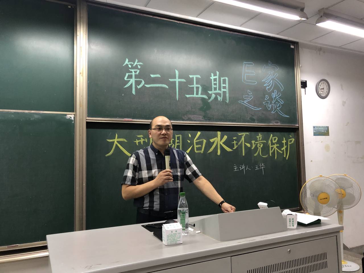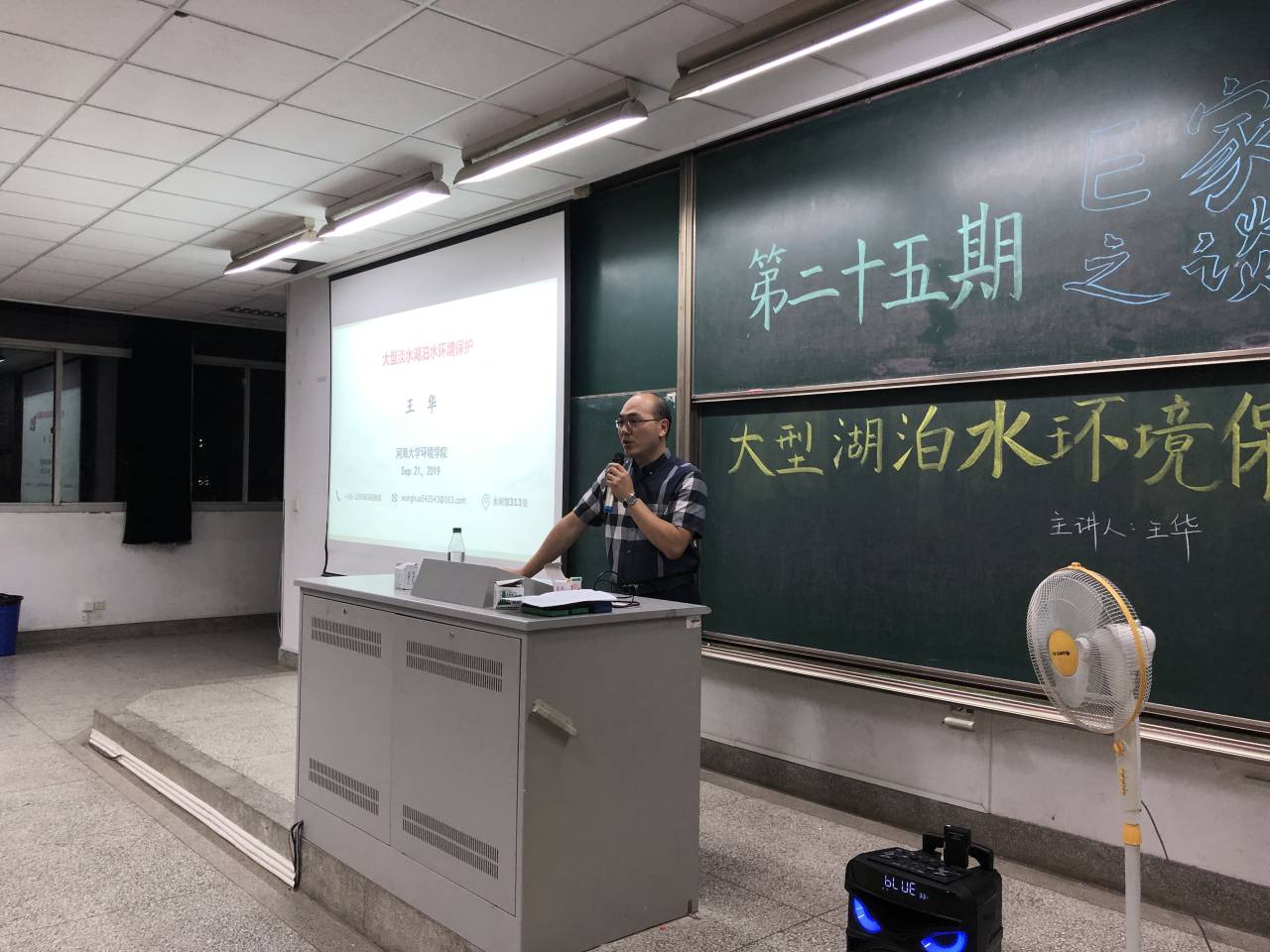 2019年9月21日晚上6:30,威廉希尔官网员工科学技术学会邀请威廉希尔williamhill环境科学与工程博士生导师王华教授在致用楼101举办了第二十五期E家之谈“大型湖泊水环境保护”讲座。