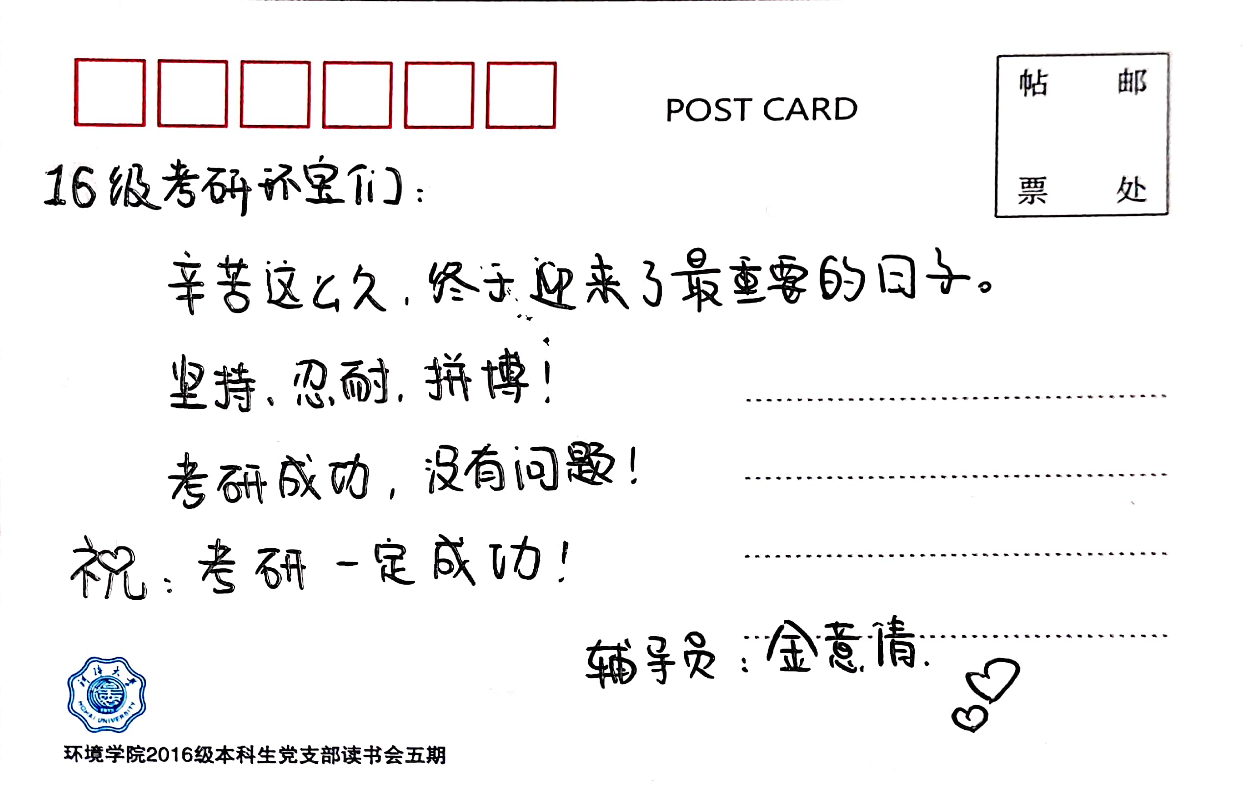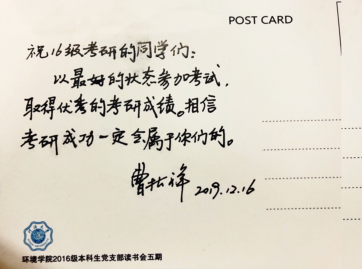 2020考研将至,为帮助威廉希尔官网考研学子顺利备考,同时拥有一个积极乐观的备考心态,公司党委副书记曹松祥老师、院团委书记兼2016级辅导员曾莉老师、2016级辅导员金意倩都给予同学们鼓励,学院各本科生党支部以及各专业也积极响应发声,写下了诚挚的祝福,给予他们成功的信念与力量。