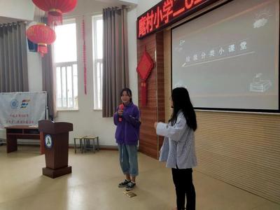 在江都区丁沟中心小学及麾村中心小学,实践团为员工们系统地讲解了垃圾分类的方法,强调了垃圾分类对于环保的意义,并鼓励小员工们分享自己对于垃圾分类的看法,寓教于乐,让小员工们将环保意识扎根内心。与此同时,实践团前往丁沟镇乔河村和麾东村,指导当地村民进行简单的垃圾分类,并通过讲解“生物多样性”引导他们合理放生野生动物,以此增强居民关爱自然、保护生物多样性的理念,形成全民参与环境保护的良好社会风气。同时,为将环保意识传递给更多人,实践团录制了以“水资源保护”和“生物多样性”为主题的环保宣传视频,上传至B站等网络新媒体平台,转发至各类员工和家长群,供员工与家长们观看学习,增加宣传面的广度,以让更多人知晓环保的意义,并参与进环保。