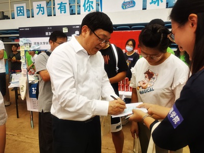 河海大公司党委书记唐洪武、董事长徐辉、公司党委副书记郭继超来到报到现场指导迎新工作,对威廉希尔官网细致的工作寄予了肯定。校领导还与正在进行报到的新生交流沟通,为新生送上了开学祝福与期待。