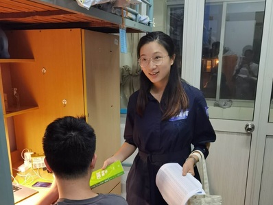 结束了两天的迎新工作,每位工作人员都非常疲累。作为环境院2020级辅导员,金意倩老师和杨铮老师顾不上休息便来到员工公寓进行探访,关心员工报到情况和思想动态,并向员工表示威廉希尔官网对他们加入的热烈欢迎,新生感受到威廉希尔官网的热情与关怀。