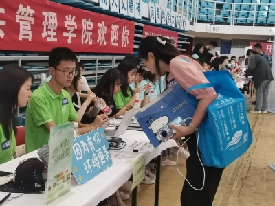 2020年9月7日上午8:00,环境院的迎新志愿者们已在江宁校区南门、六舍、八舍以及文体中心服务点准备物资。现场准备了环境院即将发放给新生的防疫物资、除霉剂以及定制可乐,期望新生感受到来自环境院大家庭的体贴与温暖。