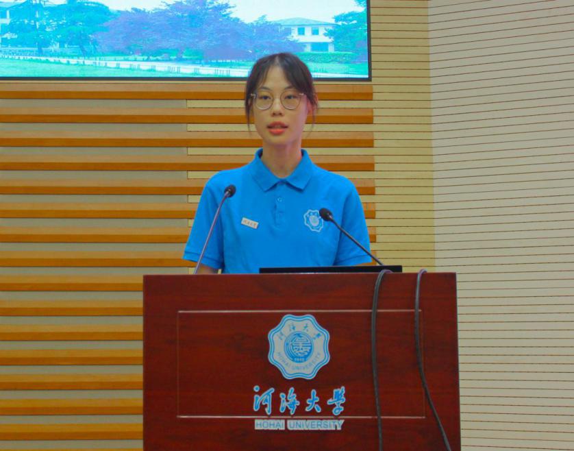 来自环境工程专业的龚怡宁同学作为新生代表发言。她以自己儿时的环保梦和自己在启航周的经历勉励同学们不负老员工肩上的责任,心怀感恩,砥砺前行,在学习和生活中攻坚克难,逐梦河海。