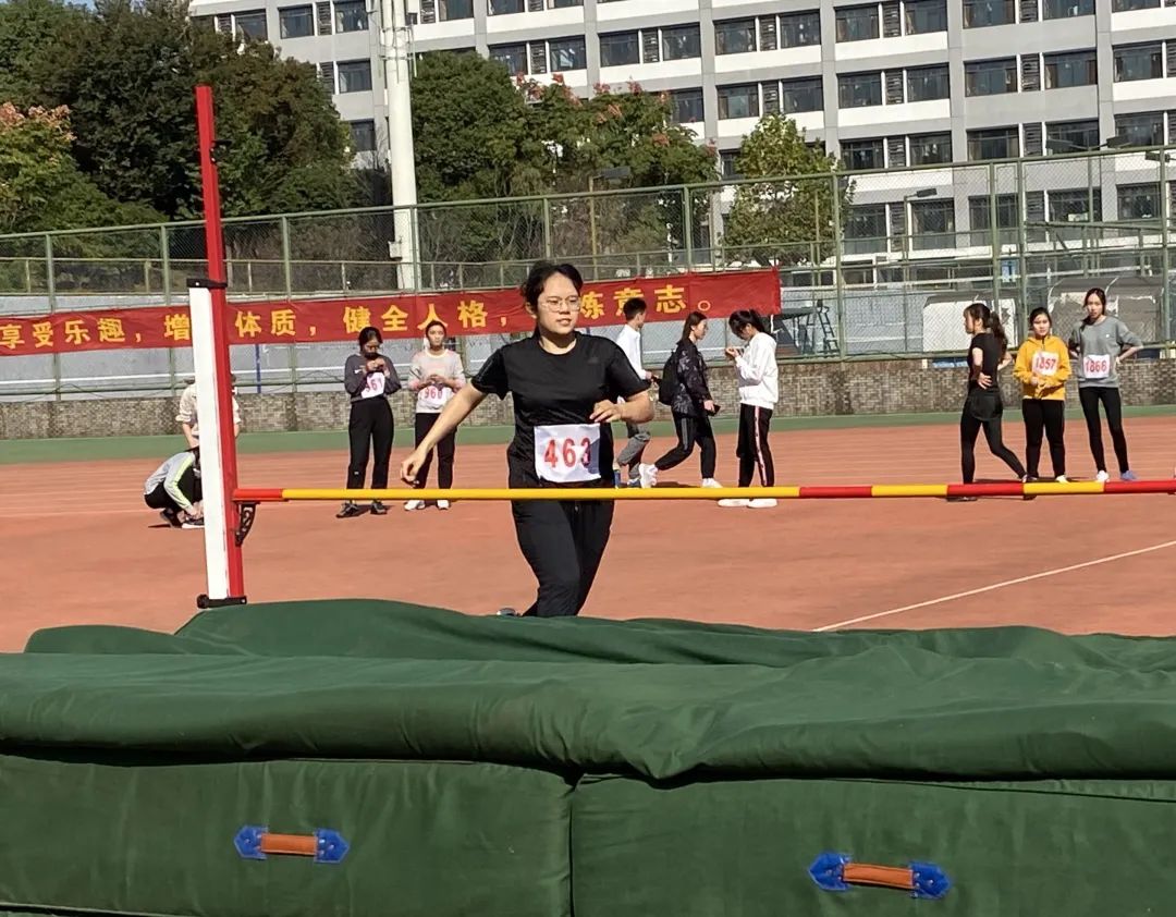 精彩纷呈的女子跳高决赛如期而至。环境院健儿叶明珠同学、孙嘉慧同学、白艺涵同学身姿曼妙,奋力一跃,轻盈的越过跳杆,在空中画出美妙的弧线。