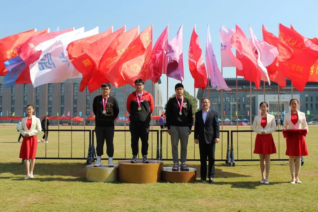 男子铅球决赛中,环境院运动员窦溱瑀同学、万凯琦同学、徐启晨同学为公司争光。伴着高挥的臂膀,铅球从手中划出圆滑的曲线,在草地上砸出了扎实的坑洼。其中窦溱瑀同学凭借高超的投掷本领荣获了第三名的好成绩。