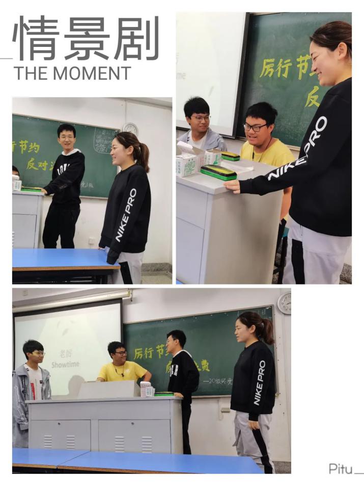 2020年10月21日,2020级环境一班在致高楼B404举办了“厉行节俭”班会。团支书倡导同学们践行光盘行动,不剩饭剩菜,以“光盘”为荣,“剩宴”为耻。同学们积极发表自己的看法,并以情景剧的形式展现了浪费的不良行为。本次班会进一步加强了同学们的勤俭节约意识,培养了厉行节俭的优良品格。最后同学们签署承诺书,并且分享了自己光盘行动的照片。