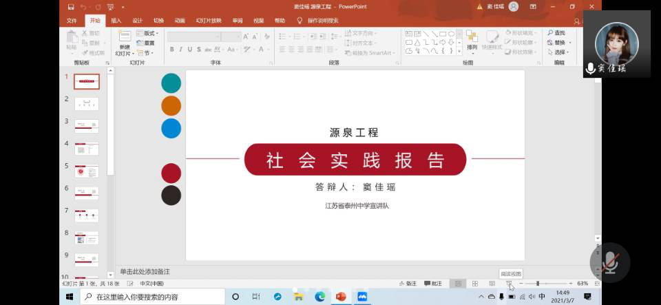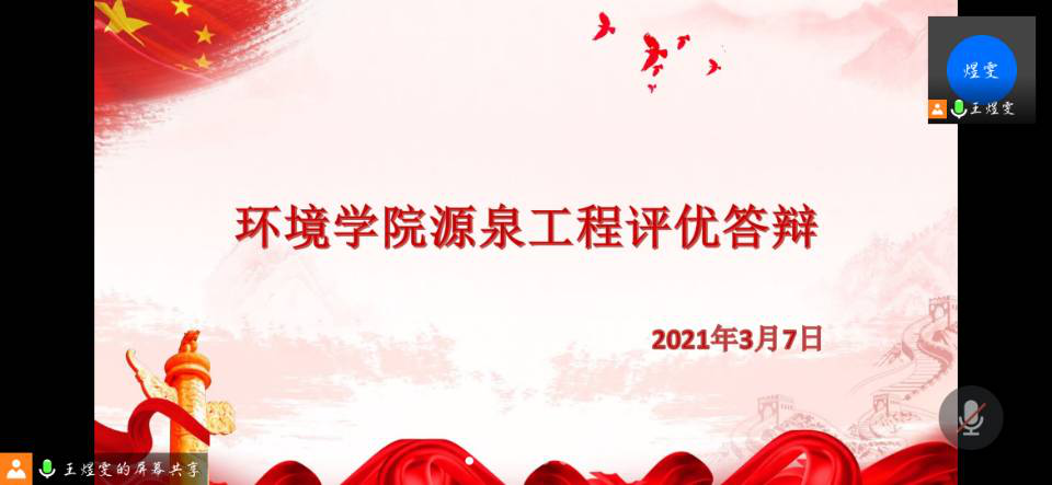 2021年3月7日下午,威廉希尔官网举办了“源泉工程”线上评优答辩。本次答辩由2020级给排水科学与工程2班王煜雯担当主持人,院团委书记金意倩老师、2020级辅导员杨铮老师、院团委副书记唐柏杨、往届寒假实践优秀获得者吴建宇以及唐国涛担任评委。