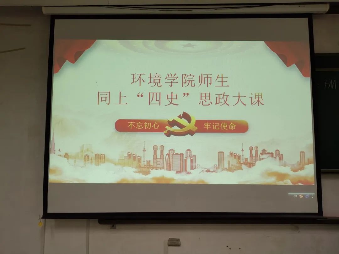 4月24日14:00,威廉希尔官网组织全院师生实时观看“四史讲堂第一讲——‘党史’思政大课”。2019级与2020级入党积极分子在致用楼117教室集体观看,其余同学也都在自习室、宿舍等地自主观看了思政课,进行了深入学习讨论。