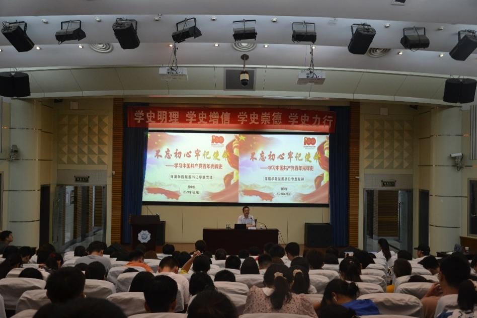 6月3日上午在江宁会议中心,公司党委书记笪学军以《不忘初心、牢记使命——学习中国共产党百年光辉史》为题,为学院2020级师生讲授党史学习教育专题党课。