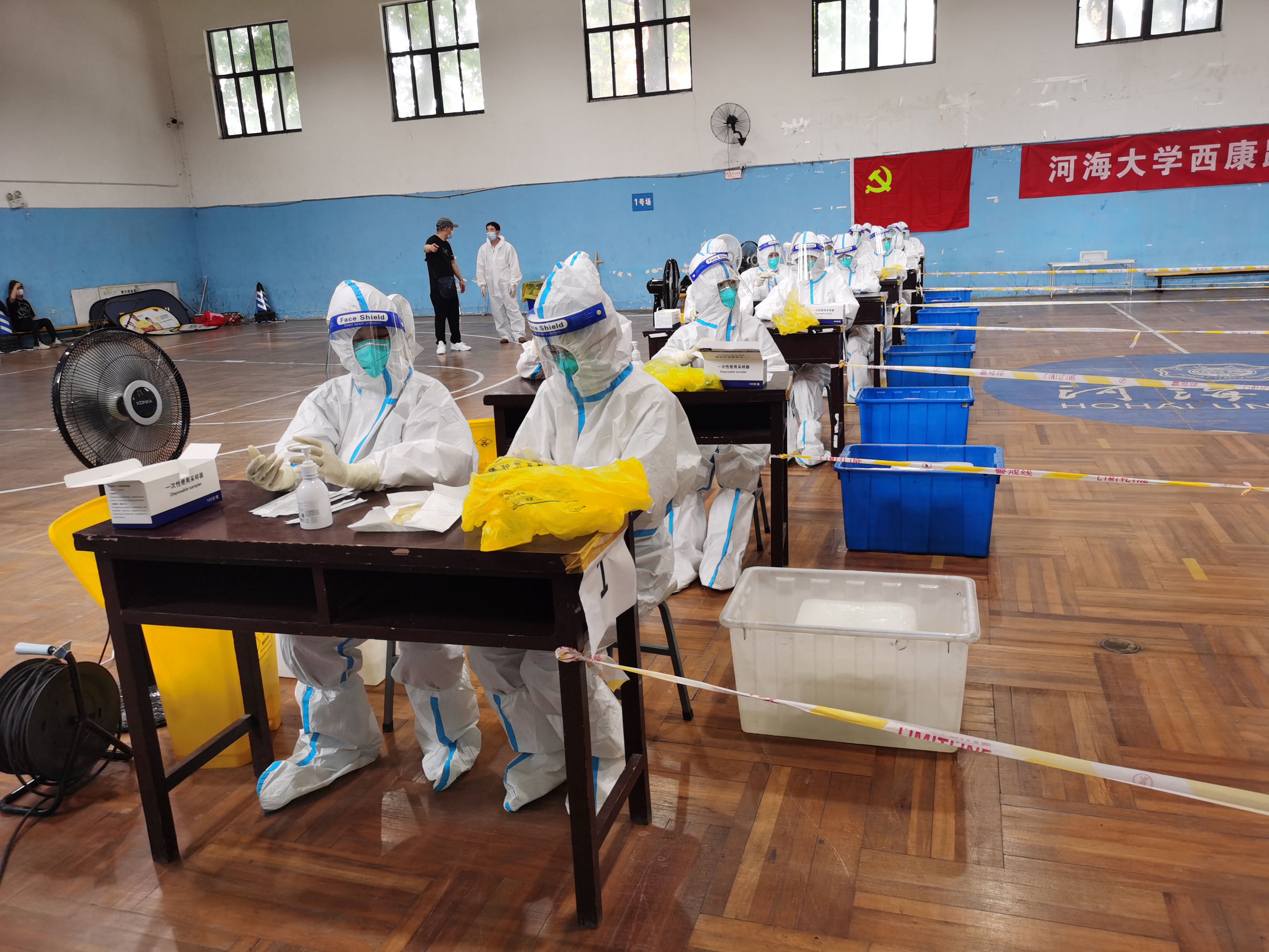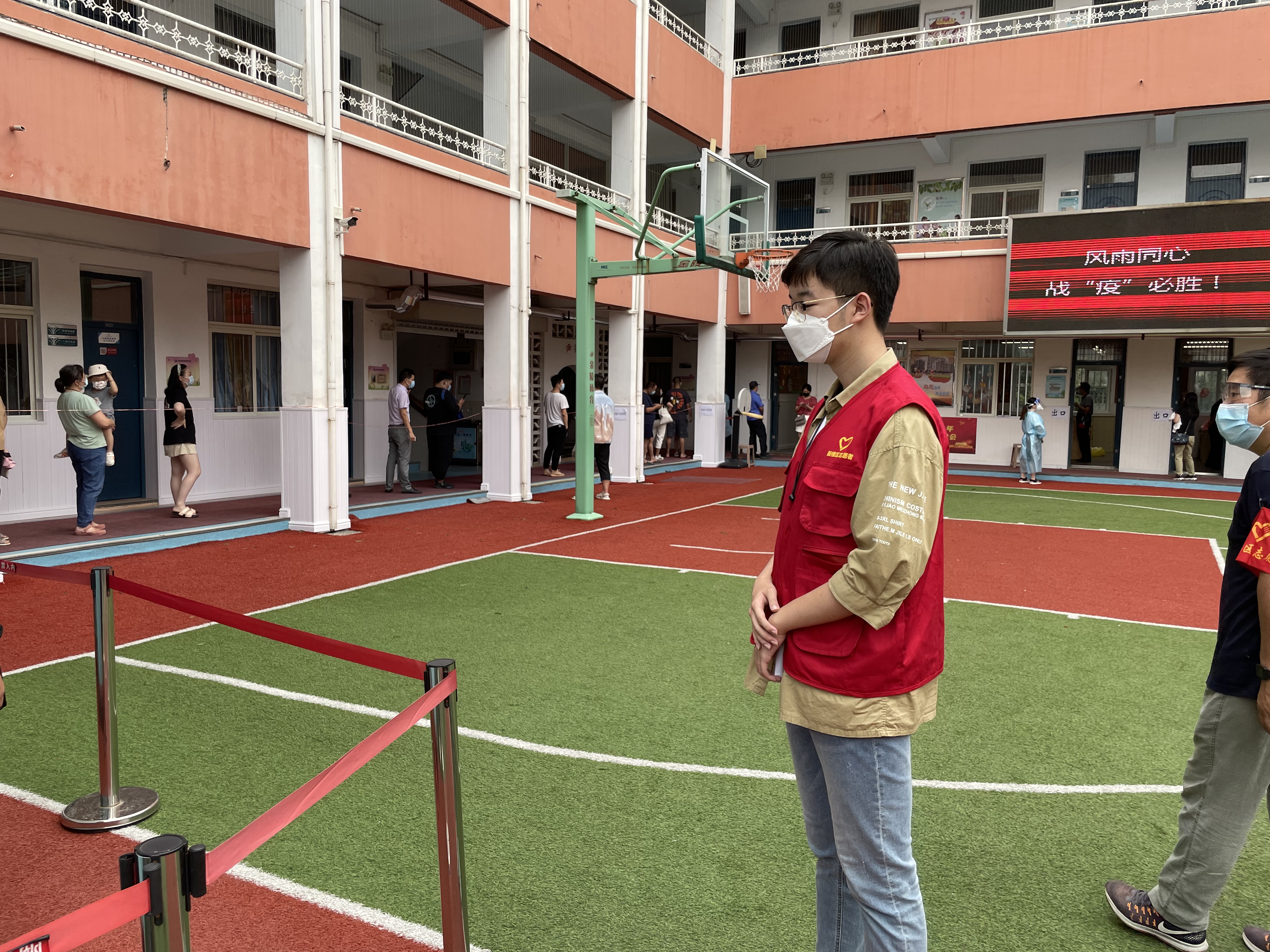 在南京市鼓楼区,给排水科学与工程专业2018级本科生杨诗瑶和环境科学(中外合作办学)专业2020级本科生马明睿在居住地街道核酸检测点加入志愿者队伍,协助社区工作人员完成维护排队秩序并查验苏康码、手工录入近万条登记信息、电话核实经停机场人员的到宁时间、核酸检测情况等工作。