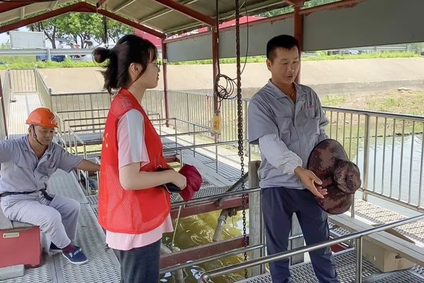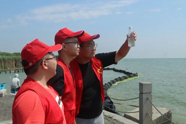 水源地生态保护是乡村生态振兴中的重要一环。实践团首先前往宜兴市生态环境局,当地工作人员向成员们介绍了宜兴过去主要存在的环保问题以及对应的政策、解决方案以及实施成效。随后,实践成员来到太湖边,观摩体验了蓝藻的打捞与清理工序,并在专业老师的指导下采集了太湖和东氿水样并进行比对。在油车水库调研期间,成员们向工作人员详细了解水质情况以及平时的储水放水情况,了解到当地政府已将该水源地保护纳入全市国民经济和社会发展规划,确保油车水库水源地水质长期稳定、达标、安全,保障城乡居民的饮用水安全,提升群众幸福感安全感。