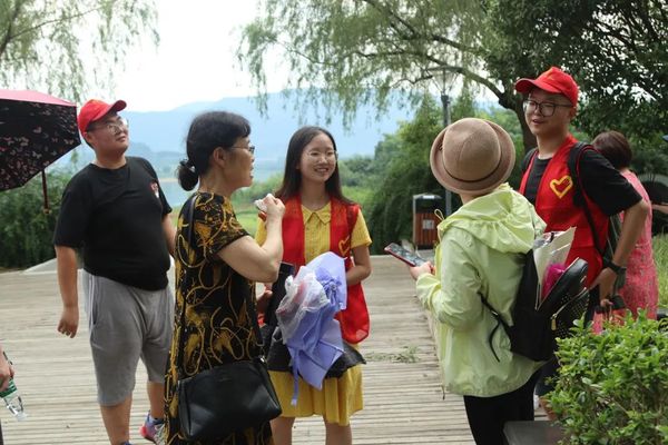 7月11日,为了解当前当地状况,传播生态保护理念,团队成员们分别前往社区街道等地进行科普。在宜兴市土城社区对居民进行科普宣传,向他们强调了水环境在生态环境中的重要地位,由于宜兴是个河湖众多的城市,因此更需要注意河道的保护与水资源的合理利用。接着,团队成员们前往恒基·誉珑岛的未成年人活动中心和宜兴市步行街,通过科普宣传漫画和环保小游戏,对广大市民进行水环境保护科普,传播绿色理念,提高公民环保素养。7月14日,科普团成员前往宜兴市龙背山展开了保护环境,清理垃圾的志愿活动,并向前来龙背山游玩的市民分发问卷,调研其对当地生态环境保护措施和效果的看法和建议。通过采访和问卷显示,当地市民普遍认为宜兴市近年来不断加大环境保护力度,当地生态环境有了显著提升,同时市民满意度也得到提高。