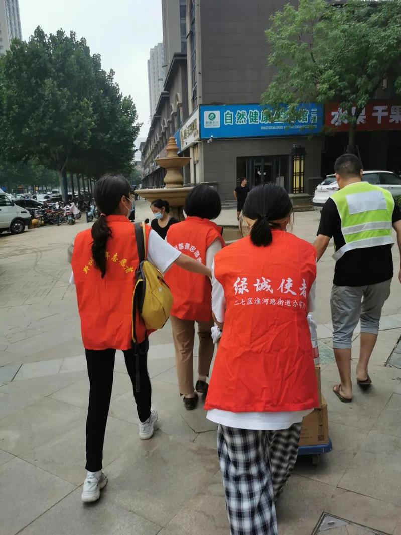 7月23日上午8点至11点,在二七区团委的动员组织下,实践团成员和其他返乡老员工、社会爱心人士等一道前往区人民政府进行搬卸捐赠物资工作。近三十余名志愿者和工作人员搭起搬卸接力人桥,将湖北省爱心企业捐赠的馒头等整车救灾物资搬卸、堆放完成。当天下午3点至7点,以返乡老员工为主的近50余名青年志愿者在淮河路街道办事处集合完毕,组成近十个小组,对接各个社区的便民服务中心进行志愿服务活动。