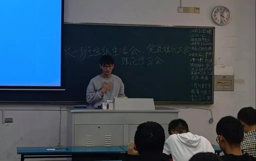 习近平总书记说:理想信念是共产党人精神之“钙”。作为团员,同学们的理想便是加入中国共产党。10月30日,2021级给排水科学与工程一班于致高楼A204举行了入党推选会。在团支书金翝启的主持下,一个个心怀崇高理想的团员同学依次上台发言。在确保推选公开,透明的条件下,同学们认真抉择了心中最适合的人选。本次活动不仅提高了同学的入党积极性,同时也宣扬了共产主义精神。
