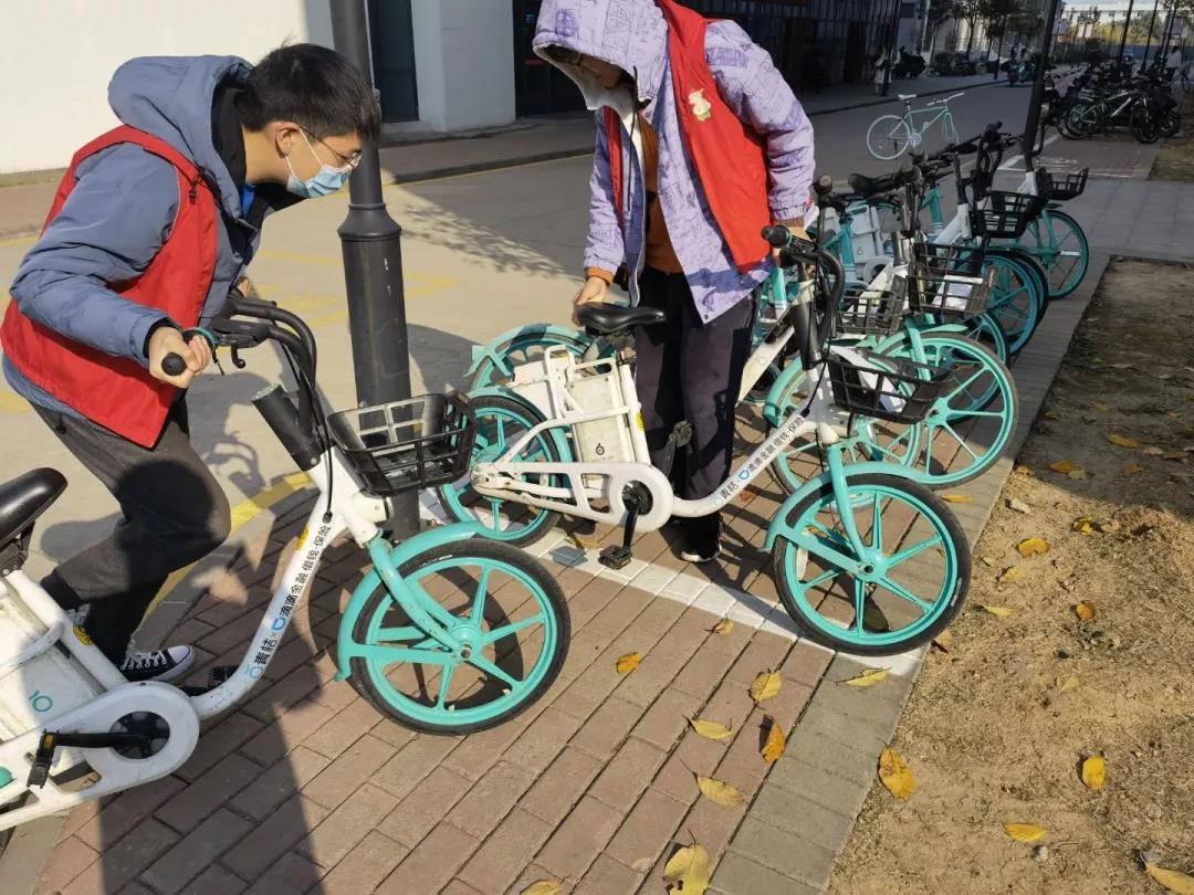 为了宣扬文明精神,共建文明校园,11月17日下午,给排水一班全体同学在校园内组织志愿者进行整理摆放共享单车活动。同学们将校内乱停乱放的共享单车一一扶正并且放回原位。摆放共享单车不仅仅是一项志愿服务,更是为了提醒同学们,文明用车,将共享单车停放到正确的位置,既方便自己也方便他人。共享单车作为校园的公共资源,每个人都有义务爱护它,老员工作为最具活力和创造力的高素质群体,更应该积极宣传、主动践行文明的骑行行为。